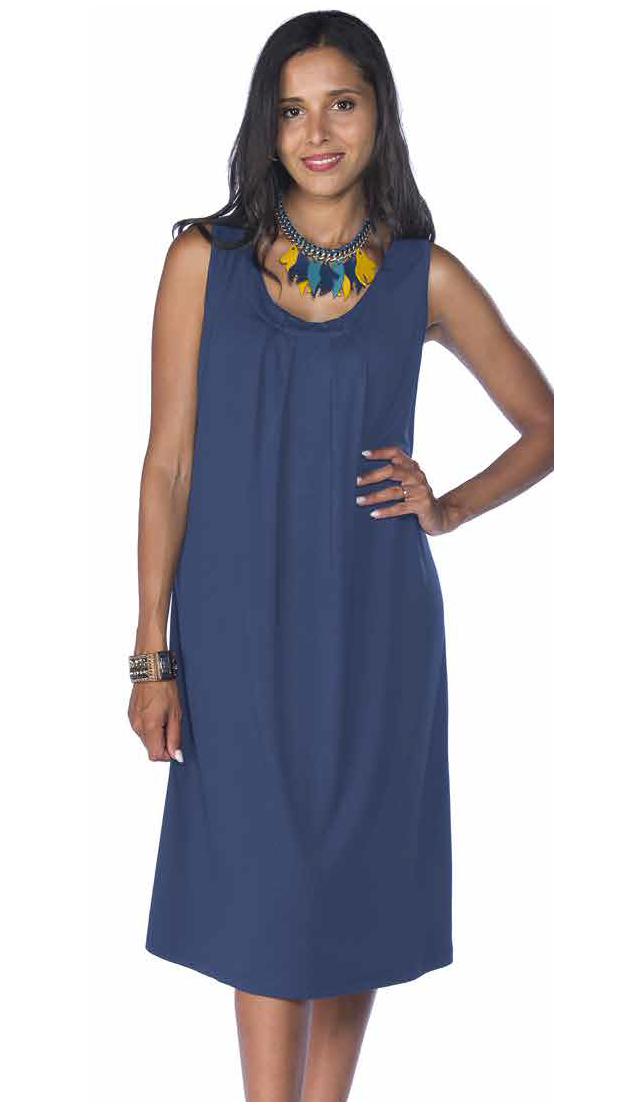 Abito corto donna, un abito morbido con girocollo e spalla larga.