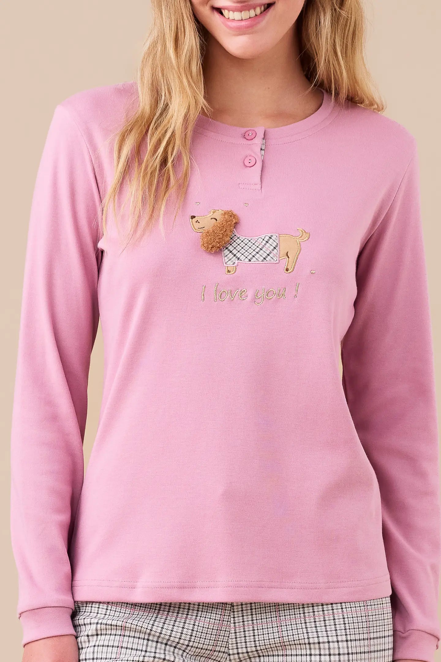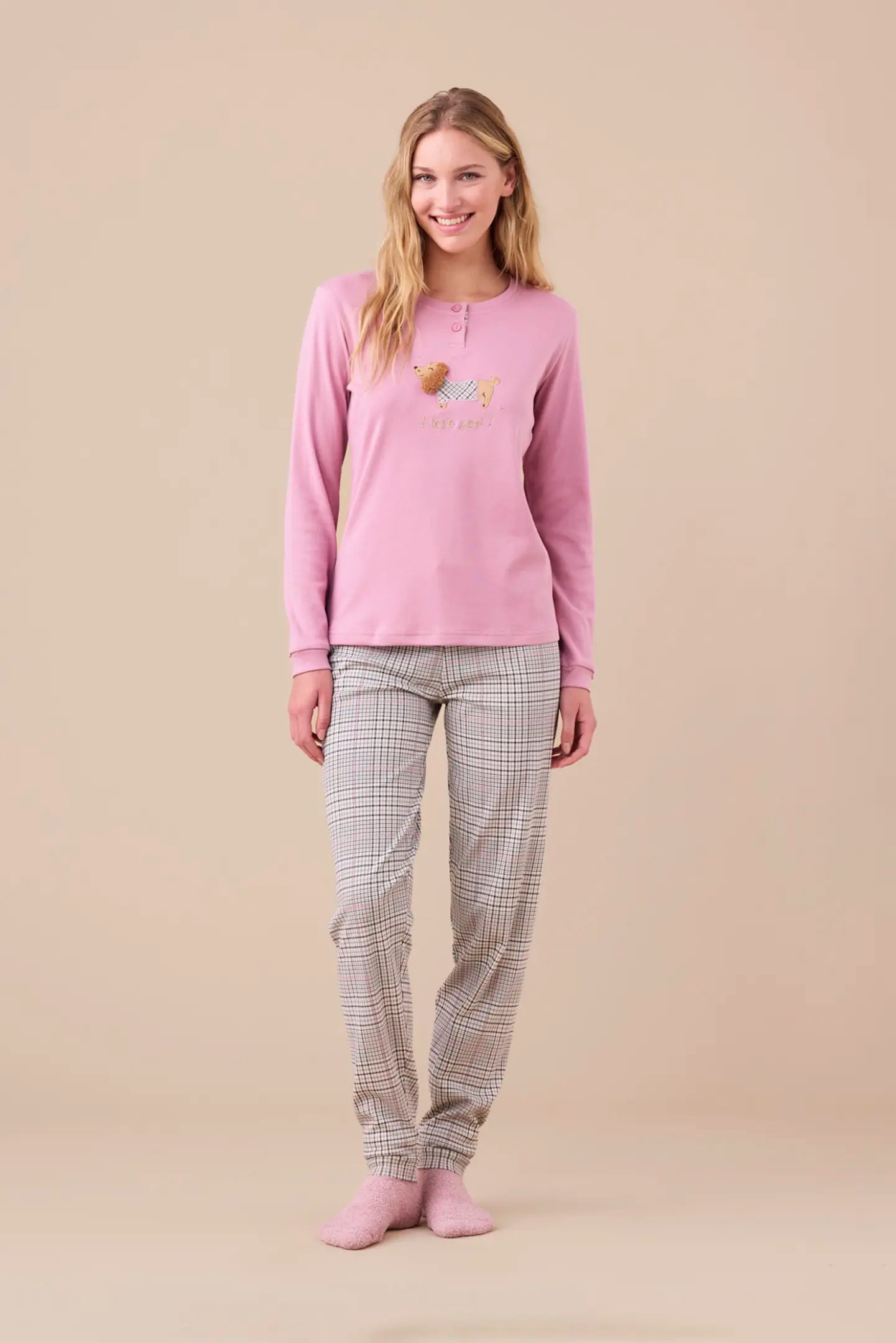 Pigiama donna in caldo cotone con pantalone con polsino.