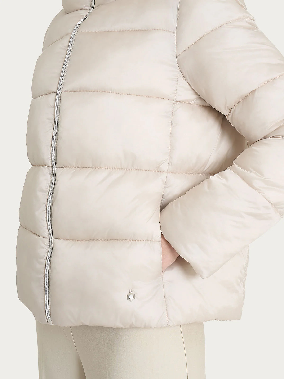 Piumino con collo alto da donna con chiusura frontale con zip e pratiche tasche laterali. Realizzato in vegan down, alternativa ecologica e cruelty-free alla piuma d’oca che garantisce calore, leggerezza e traspirabilità. Un piumino lucido è molto più di un capo caldo: è una scelta di stile e funzionalità. La sua finitura brillante dona un look moderno e distintivo, valorizza i colori e le forme del capo, e si adatta perfettamente a contesti urbani e glamour. Il collo alto ti protegge nelle giornate più fredde, mentre la chiusura frontale mantiene una linea pulita ed elegante. Disponibile in diverse tonalità sia chiare che scure per soddisfare ogni esigenza di stile nel massimo comfort. Questo capo rappresenta la perfetta sintesi tra moda e praticità, e risponde alle esigenze di chi vuole affrontare l’inverno con personalità senza rinunciare al comfort.