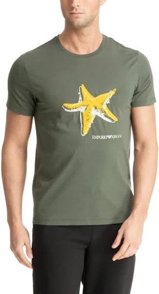 T-shirt EMPORIO ARMANI in cotone con girocollo, regular fit e stampa con stella marina sul petto.